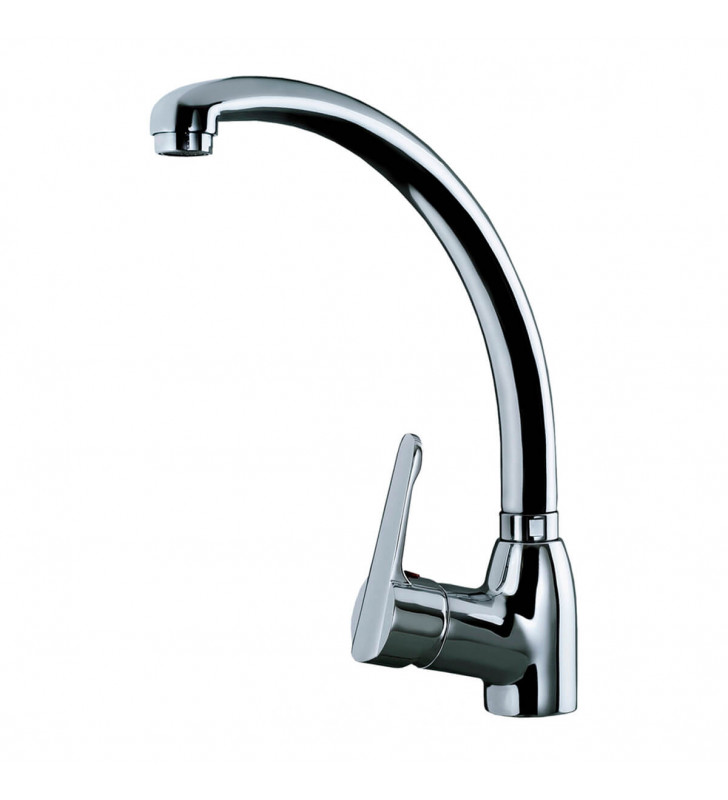 Grifo de cocina monomando con caño alto giratorio y aireador anti-calcáreo.