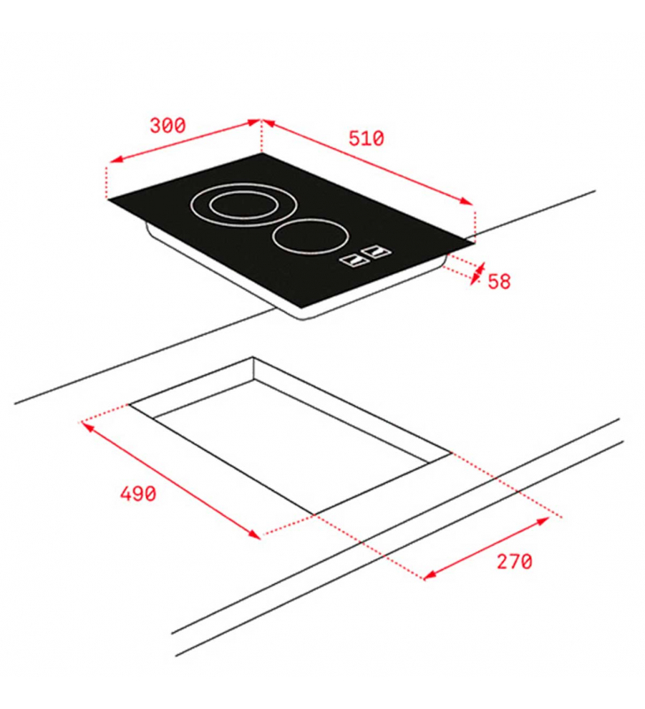 Medidas encastre (ancho x fondo): 270 x 490 mm.