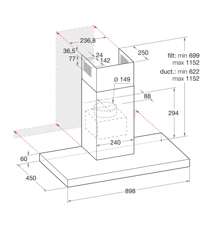 Salida máxima de extracción de aire 432 m³/h.