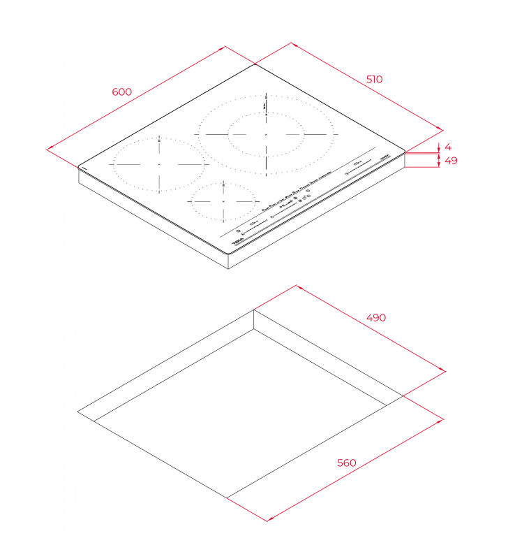 Medidas encastre (ancho x fondo): 560 x 490mm.