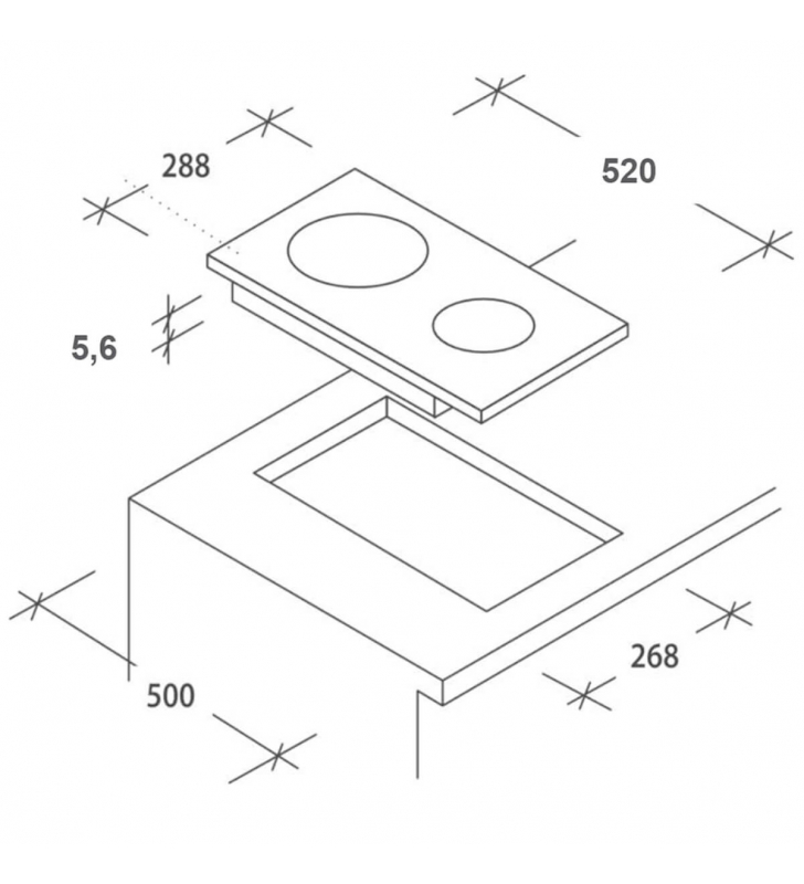 Medidas encastre (ancho x fondo): 268 x 500mm.