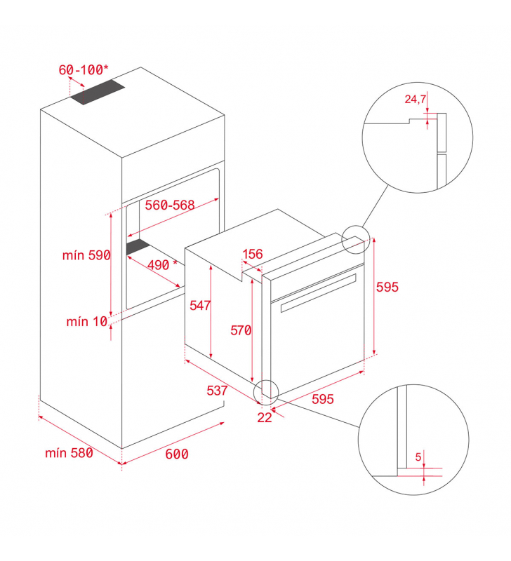 Medidas (alto x ancho x fondo): 595 x 595 x 559mm.
