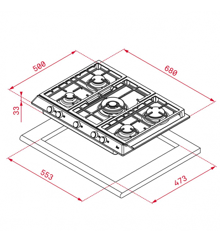 Medidas encastre (ancho x fondo): 553 x 473mm.