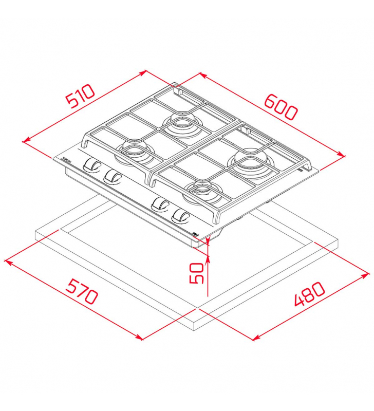 Medidas de encastre (ancho x fondo): 570 x 480mm.