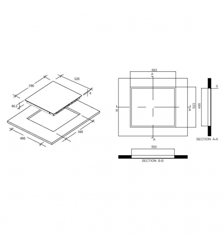 Medidas encastre (ancho x fondo): 560 x 490mm.