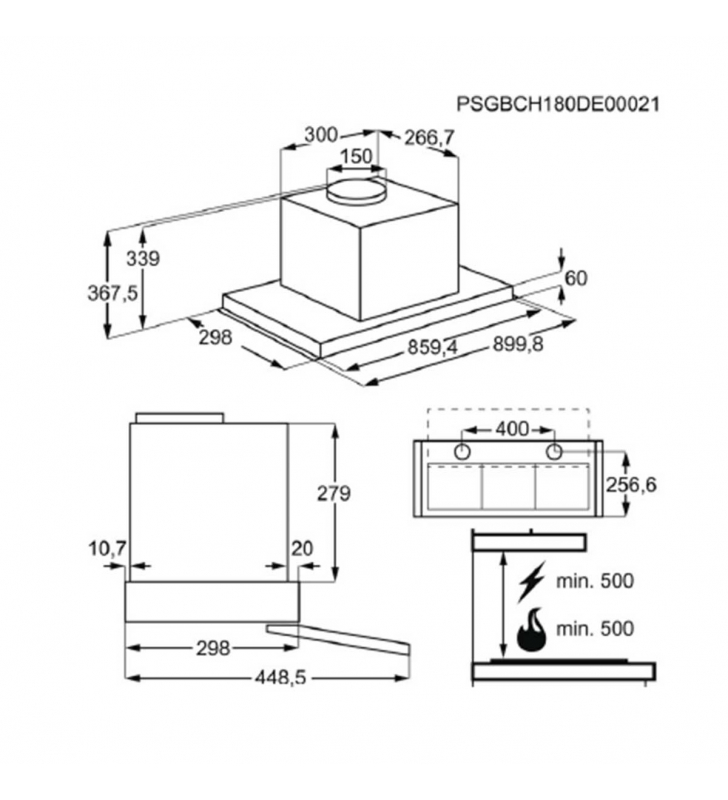 Extracción de aire, o recirculación si se instala con filtro de carbono.