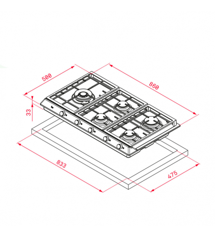 Medidas de encastre (ancho x fondo): 833 x 475mm.