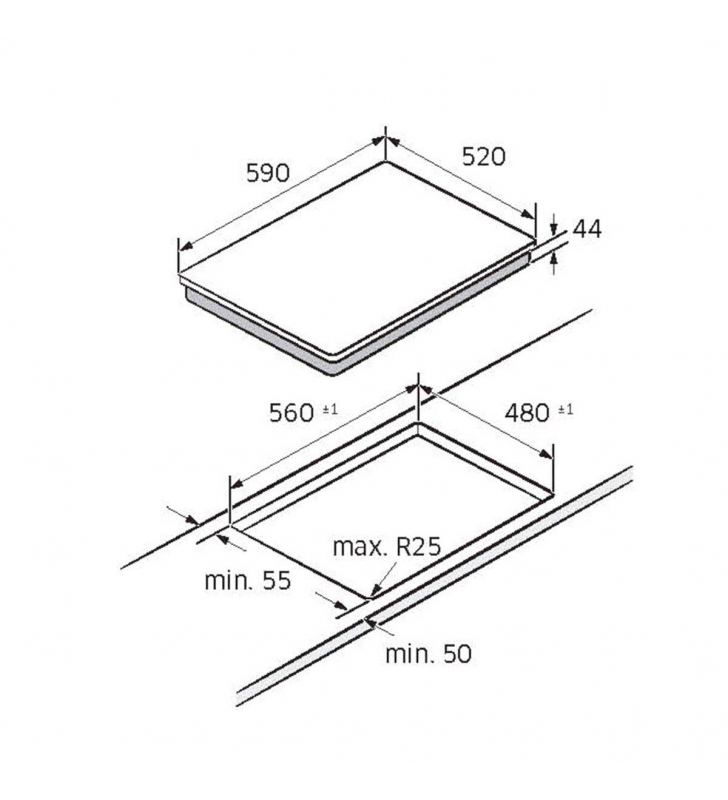 Medidas de encastre (ancho x fondo): 560 x 480mm.
