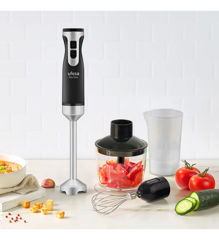 Incluye batidor emulsionador, picadora y vaso medidor.