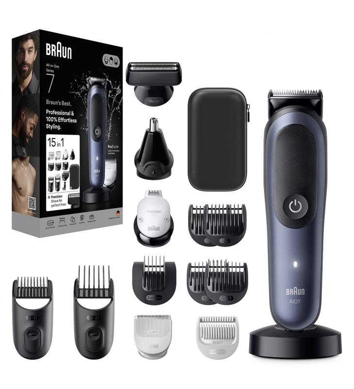 Afeitado profesional y 100 % sin esfuerzo: La recortadora 15 en 1 de Braun para afeitado de pies a cabeza incluye herramientas especiales para barba, nariz y orejas, recorte pelo y depilación masculina para todo el cuerpo.