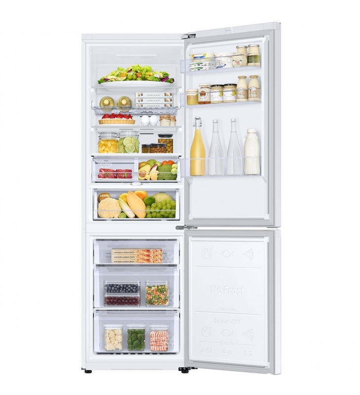 Características del frigorífico: 3 Estanterías, Balda botellero, 3 estantes en la puerta, Huevera, Cajón Optimal Fresh+, Luz LED interior superior, Material de estantería Vidrio templado, 2 cajones de verduras y frutas, Función Power Cool.